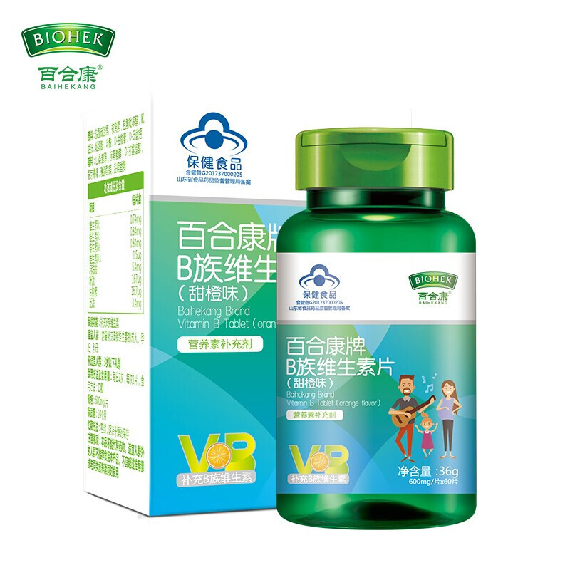 百合康牌B族維生素含片60片/盒維b咀嚼